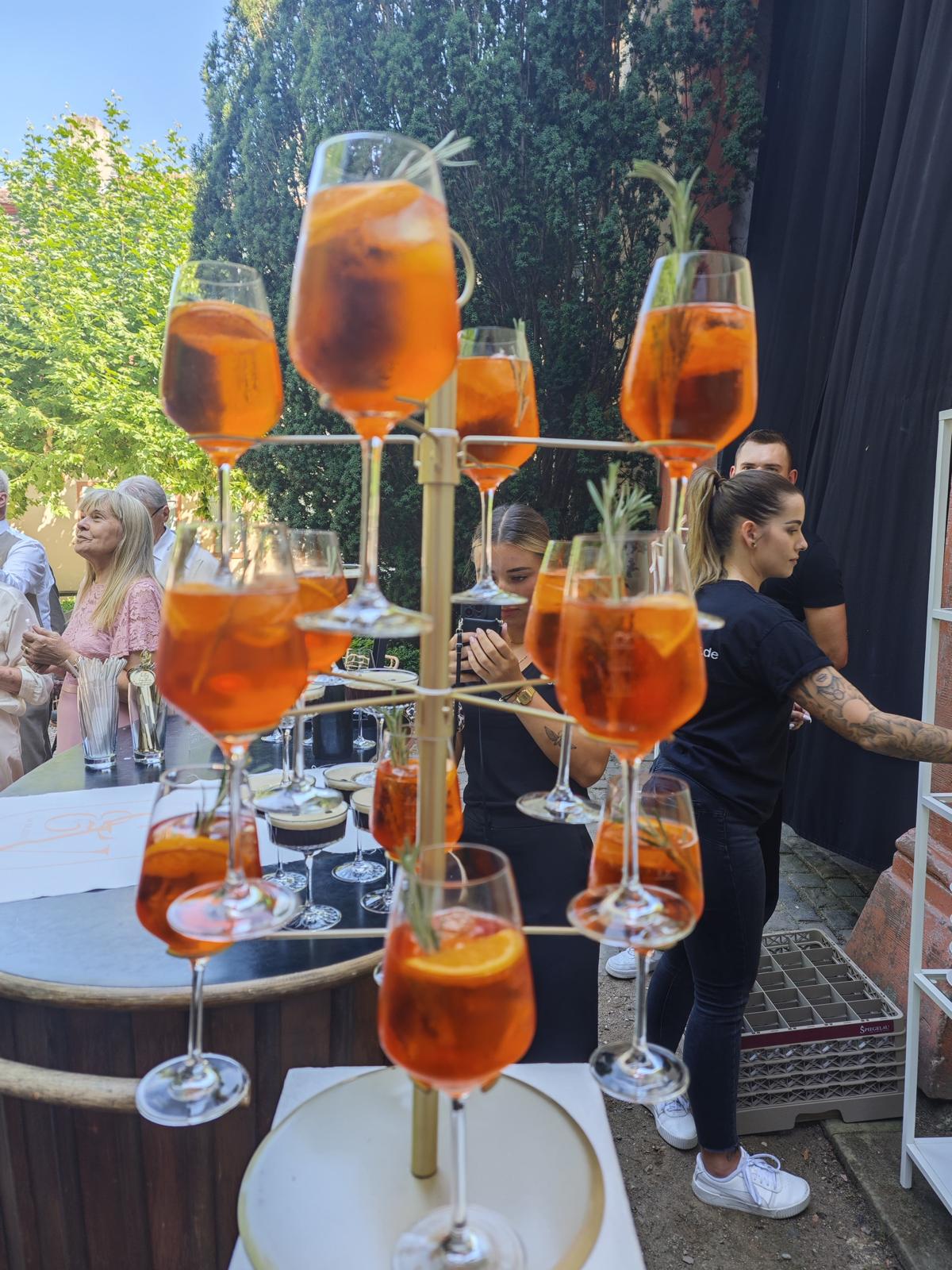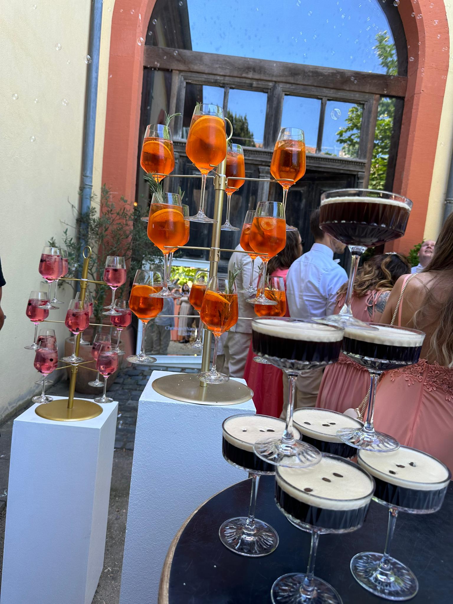 Ob eleganter Champagner Tower, stylischer Espresso Martini Tower oder unsere Spritz-Servierbäume – diese besonderen Elemente sind nicht nur ein optischer Hingucker, sondern schaffen unvergessliche Augenblicke.